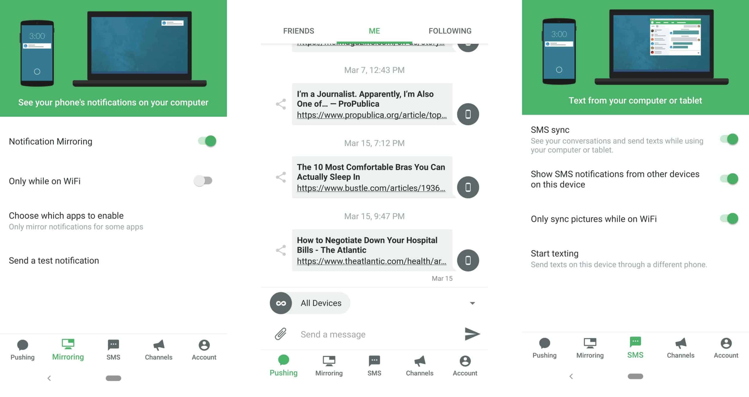- يعمل Pushbullet بشكل رائع على جميع أجهزتك ، مما يجعل المشاركة والدردشة مع الأصدقاء أكثر ملاءمة من أي وقت مضى.