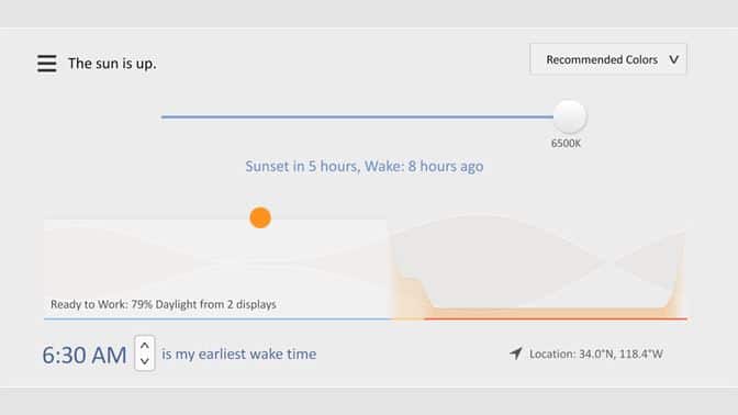 يعمل F-lux عن طريق حساب وقت غروب الشمس التقريبي لموقعك. عند غروب الشمس ، ستحاكي شاشة الكمبيوتر الطبيعة وتسخن الألوان تدريجيًا. وهذا بدوره يمتزج بشكل أفضل مع الضوء المحيط.