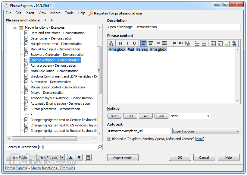 برنامج PhraseExpress لتسريع مهام الكتابة