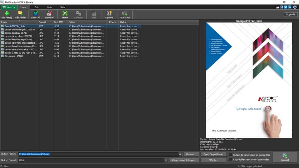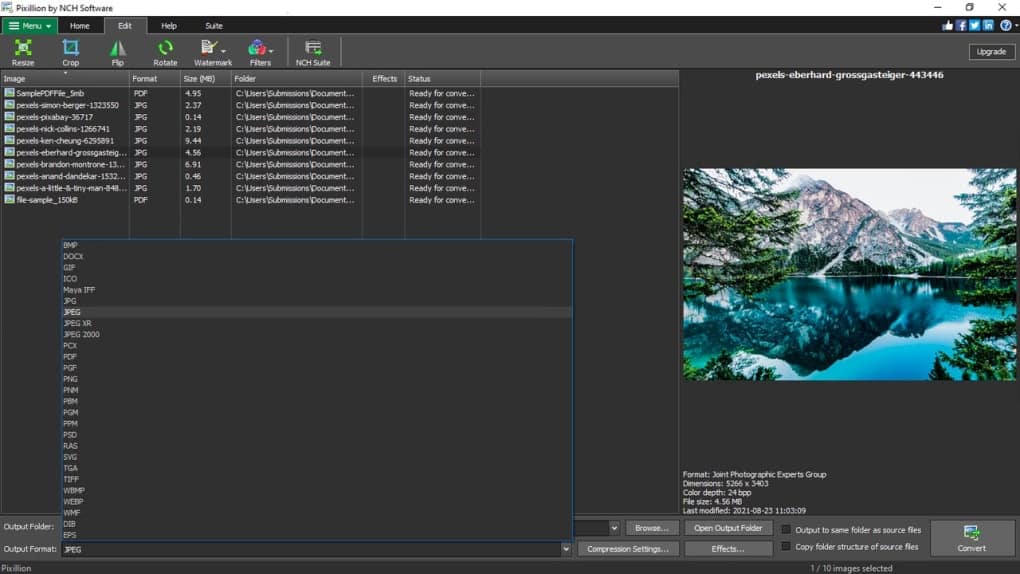 Pixillion Image Converter هو تطبيق لتغيير تنسيق ملفات الصور من تنسيق الي اخر ويحتوي علي العديد من التنسيقات المختلفه مثل JPEG, GIF, PNG, PDF, BMP, TIFF وغيرهم الكثير كما انها ايضا تدعم اكثر من70 صيغه مهمه للتعديل علي الصور مثل PSD, HEIC, JPG, RAW, TIF, WEBP, WMF, etc والاهم من كل هذا انه مجاني تماماً ويعمل بكفائه عاليه وسهل الاستخدام بشكل مثير للاهتمام