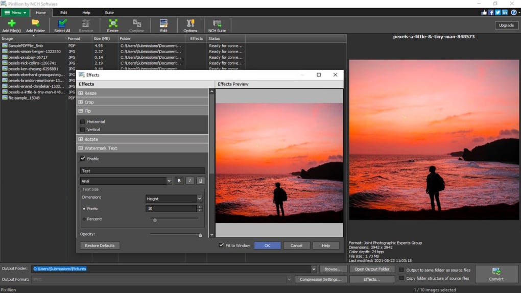 - ليس ذلك فحسب، يمكنك إضافة بكفاءة تعليق النص و علامات مائية على أي من الصور المفضلة لديك. ومع ذلك ، إذا كنت بحاجة إلى المزيد من أدوات تحرير الصور ، فمن المستحسن أن تقوم أيضًا بتثبيت برنامج محرر الصور من نفس المطور ، NCH Software ، والذي يسمى PhotoPad. وهي مجهزة بأحدث ميزات تحرير الصور التي لا يمكنك العثور عليها في Pixillion نظرًا لأنها تخدم فقط وظائف التحرير الأساسية. \