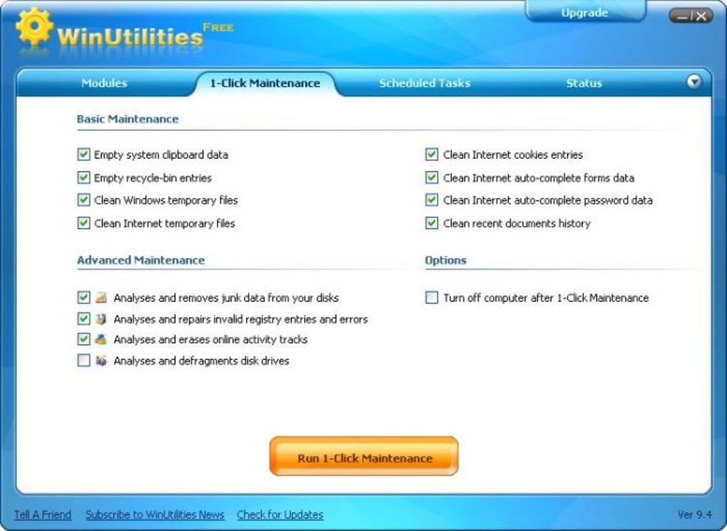WinUtilities هي مجموعة مختارة من الأدوات الاحترافية ، والتي تم تصميمها لمساعدتك على تحسين أداء نظام الكمبيوتر الخاص بك عن طريق أداء مهام مثل إزالة الملفات غير الضرورية وإصلاح الاختصارات المعطلة. ومراقبه جهاز الكمبيوتر الخاص بك واظهار تفاصيل كل مكون من مكونات جهاز الكمبيوتر الذي يعمل بنظام ويندوز مثل الذاكره العشوائيه (الرام) والمعالج والقرص الصلب